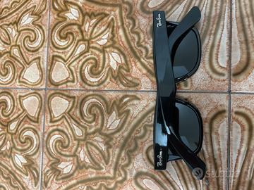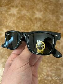 Vendo Ray-Ban Original Wayfarer Classic (modello RB2140) con montatura in acetato nero lucido e lenti G-15 verdi. Gli occhiali sono originali, come confermato dai loghi sulle aste, dai fregi metallici frontali e dall'incisione "RB" sulla lente. Le condizioni sono ottime, le lenti non hanno graffi e l'adesivo di fabbrica è ancora presente. La vendita include la custodia originale. Spedizione veloce con imballaggio adeguato.