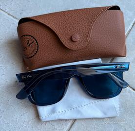 Occhiali da sole Ray-Ban originali, come ben visibile da foto (Made in Italy e matricola), unisex. Nuovi di zecca, senza alcun tipo di difetto, compresi di custodia originale. Prezzo originale da sito ufficiale 184€.