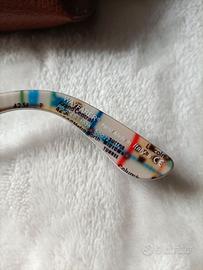 Occhiali da sole da collezione in perfette condizioni, potrebbero presentare qualche leggera imperfezione data dall'uso, ma non ci sono danni visibili. L'astuccio è danneggiato.