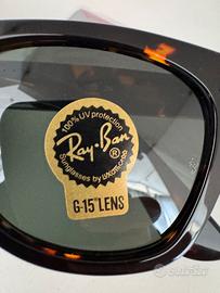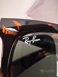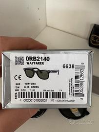 Vendo i leggendari Ray-Ban Wayfarer, il modello simbolo del design senza tempo. Questa versione tartarugata con lenti verdi è un pezzo essenziale per ogni collezione, garantendo uno stile vintage e allo stesso tempo moderno.