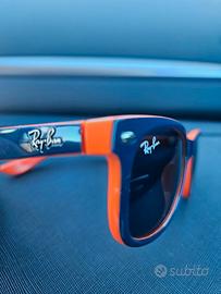 Ray-Ban NEW WAYFARER per bimbi, misura 47-15, versione mix con montatura colore arancione e blu.