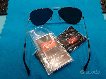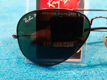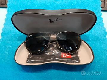 Occhiali da sole "Ray-Ban Aviator Large Metal Polarized", lente color verde, montatura color gun metal, ottime condizioni, con custodia rigida, custodia morbida e panno per pulizia, comprati un paio d'anni fa per svizio, indossati una cinquina di volte, vendo per inutilizzo e per monetizzare. Prezzo non trattabile.