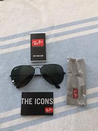 vendo splendidi rayban aviator polarizzati originali, appena rimessi a nuovo. lenti, naselli e plastiche delle aste. libricino originale e panetto ancora chiuso.