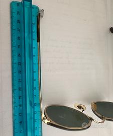 Gli occhiali sono originali della rayban, con montatura bagnata in oro e celluloide color Havana nella parte terminale delle stanghette, le lenti sono verdi scure e polarizzate.