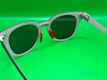 Edizione limitata con certificato numero 564 di 600 pezzi al mondo. Dedicato al prestigioso Gran Premio di Monaco con cornici che rappresentano l'apice sia del design iconico che delle prestazioni. Interamente in carbonio. Con lenti placcate in oro bianco 24 carati, cerniere placcate in oro bianco e perni anteriori rossi Ferrari.
