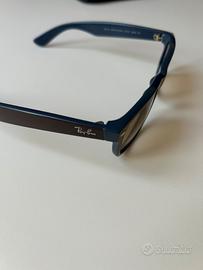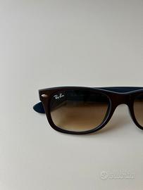 Occhiali da sole Rayban New Wayfarer. Lenti sfumate marroni, montatura esterna marrone e interna blu navy in contrasto. custodia originale in finta pelle nera in perfetto stato. Occhiali usati pochissimo, in perfetto stato.