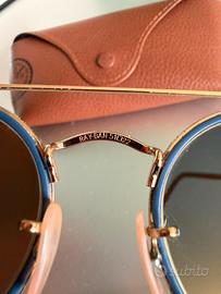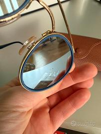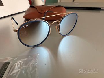 Vendo Ray ban occhiali da sole RAM4770AA 145 RC028 specchiati , colore oro e azzurro , Condizioni: usati (con segni di usura) Condizioni lenti : buone con alcuni graffietti e puntini neri Assolutamente originali