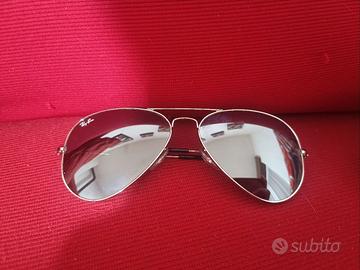 Vendo Rayban Aviator Large Metal modello RB3025 con montatura in metallo argentato e lenti specchiate.