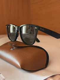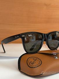 Vendo Rayban wayfarer unisex occhiali da sole causa doppio regalo. Taglia 54, acquistati su zalando a 165€ (completi di fattura) Forma occhiali: Squadrata Fantasia: Monocromo Colore delle lenti: Scuro (categoria 3) Protezione UV: Si Portaocchiali: Custodia rigida Larghezza: 15 cm nella taglia 54 Astine: 14 cm nella taglia 54 Ponte: 1.4 cm nella taglia 54