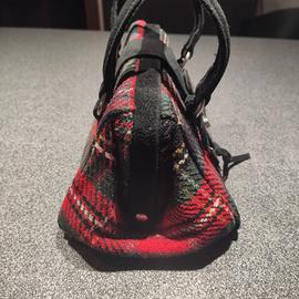 Bauletto EMPORIO ARMANI in grazioso tessuto scozzese, manici in pelle scamosciata nera, fibie ed accessori in metallo lucido, ardiglione con griffe EMPORIO ARMANI. Interni perfetti in tessuto con vano portacellulare e vano con cerniera perfettamente funzionante. Fondo perfetto senza segni di usura con slitte in metallo. Un accattivante must per l'inverno 2025. Dimensioni lunghezza cm.30 x profondità cm.15 x altezza cm.13.
