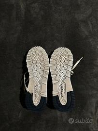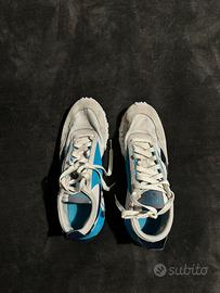 Sneakers originali, colore bianco/beige con dettagli blu elettrico e navy.