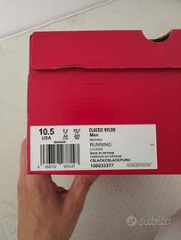 Reebok Classic Nylon Uomo Nere 44 EU 10.5 Usa. Nuove, mai indossate eccetto per provarle e ancora con cartellino, imballaggio e confezione originale. Hanno solo un minimo di polvere perché tenute un paio di mesi sul davanzale. Ottime scarpe per parkour