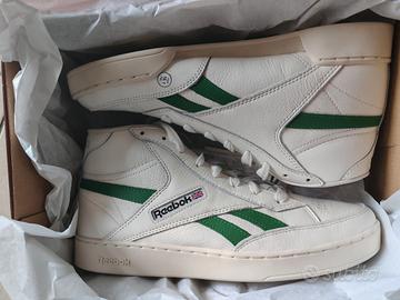 Reebok modello Club C, scarpa alta in vera pelle, stile anni '80. Modello esclusivo, originale, nuovo, non usato, esaurito e introvabile nei negozi e introvabile anche da Reebok. Completo di suoi talloncini originali, e nella sua confezione originale. Vendo causa taglia sbagliata: è disponibile sia in taglia 43 che la taglia 42 al prezzo di 129€ al singolo paio. Vendo un paio alla volta o se si preferisce anche entrambi insieme. Non c'è nei negozi e neanche più da Reebok in casa madre.