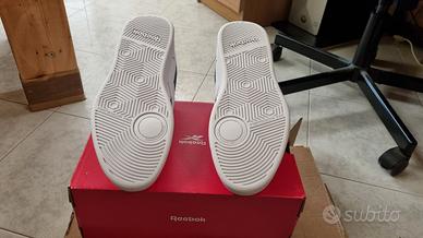 Vendo scarpe da ginnastica Reebok court advance bianche mai indossate perfettamente nuove di scatola, taglia 39. Ho solo provato la taglia appena sono arrivate a casa e con un piede lungo 26cm a me calzano giuste. Le avevo prese qualche mese fa insieme alle Court retro perché mi piacevano entrambi i modelli, poi una volta a casa ho scelto le Court retro sempre taglia 39 che metto tutti i giorni, e queste ho pensato di tenere come scarpe di scorta, ma dato che adesso ho bisogno di qualche soldo in più, le metto in vendita. Grazie a tutti per l'attenzione. Prezzo non trattabile!