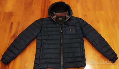 Nuovo, originale, Vera Piuma, colore blu navy, taglia L . prezzo negozio e on line euro 350. Vendo Causa regalo doppio. Per cortesia: no sconti (il prezzo è già scontato), no scambi, no spedizioni, solo ritiro a mano a Milano zona sud/est. Grazie saluti