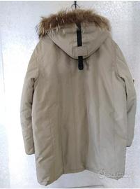 REFRIGUE originale PARKA giaccone beige invernale da uomo caldo , confortevole realizzato esternamente in nylon 100%, fodera in nylon 100%, l'imbottitura è in al 60% piuma d'oca e al 40% penne d'oca.