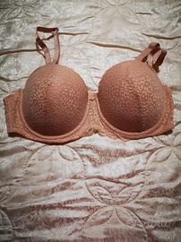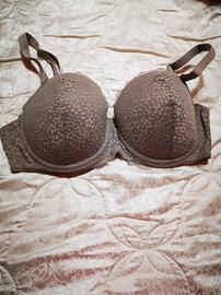 Tre reggiseni in pizzo leggermente imbottiti, con spalline removibili, uno bianco, uno beige e l'altro color tortora, taglia 5, nuovi mai usati, ma senza cartellino.