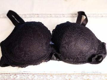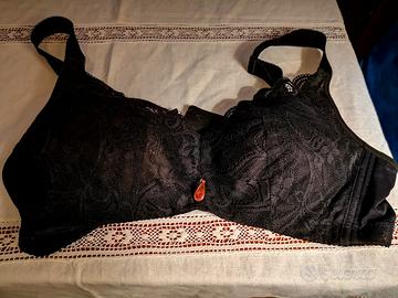 Reggiseno nero in pizzo con leggera imbottitura, spalline grandi e resistenti, chiusura con 3 ganci e quattro grandezze, taglia quarta.