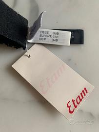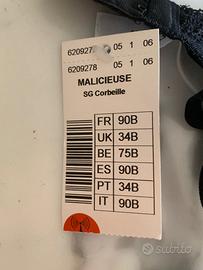 ETAM reggiseno push-up in pizzo a balconcino con ferretto, tinta unita nero, senza imbottitura, coppe foderate leggermente trasparenti, inserti in pizzo, chiusura con gancetti posteriori e spalline regolabili, composizione: 95% poliestere 1 % poliammide, 4% elastene, taglia FR – IT 90B EU 75B UK34B, nuovo con cartellino, possibile anche ritiro a mano a Milano, zona Niguarda, con la formula visto e piaciuto
