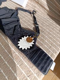 Bellissimo reggiseno nero con ferretti e inserti in pizzo. Nuovo mai usato. Vendo perché un po' piccolo. Sul cartellino è indicato 4C ma più adatta ad una 3C, è più corretta la misura internazionale 80C che corrisponde infatti ad una terza.