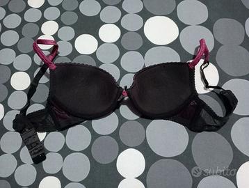 Reggiseno push-up viola con pois e dettagli in pizzo nero usato una o due volte in ottime condizioni. Taglia 3B.