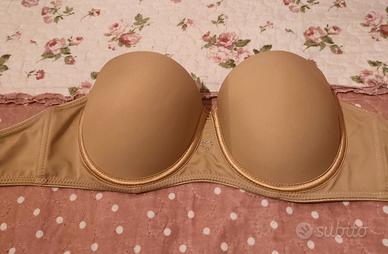 Reggiseno imbottito, senza bradelle, a fascia colore carne – coppe imbottite Vendo reggiseno a fascia senza bradelle con coppe imbottite, perfetto da indossare sotto abiti senza spalline. Modello semplice ed elegante, dona una bella forma e buon sostegno. 🖤 Colore: carne (neutro) 📏 Taglia: 3 Cup B Marca Aris ✨ Condizioni: ottime, ma usato, il targhettino del reggiseno è consumato 👗 Ideale per: vestiti scollati o senza spalline Nessun difetto. Pulito e pronto all’uso. 📦 Spedizione rapida e consegna a mano