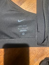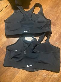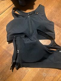 Reggiseno nero taglia M marca Nike con cerniera sul davanti e gancetto per ulteriore tenuta-sostegno elevato-coppe siglate nike che si possono estrarre- mai indossati- sono due - ogni reggiseno costa 25 euro