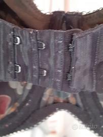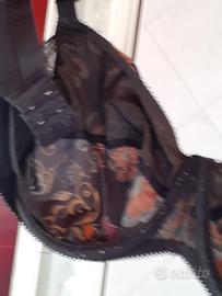 bel reggiseno FELINA in cotone e seta nero con stampe a motivi floreali multicolori taglia 4 D indossato pochissime volte