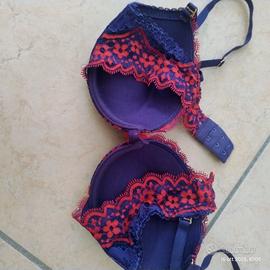 Reggiseno Verdissima, nuovo, mai indossato, leggermente imbottito, tg 2, coppa B, 75 B, colore viola con ricamo rosa fucsia.