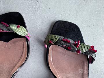 Sandali originali Rene’ Caovilla, con cristalli e pelle in rettile , tacco 6 cm. Numero 37 e mezzo