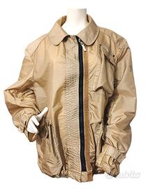Giacca Replay color beige in tessuto tecnico traslucido, leggera e robusta (80% poliammide, 20% poliuretanica), collo a camicia, 3 tasche frontali, polsino regolabile con velcro, chiusura a zip.