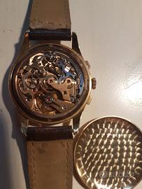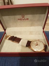 Revue chrono anni 60 orologio revue anni 60 in oro 18 k. movimento valjoux 23 perfettamente funzionante sia nel tempo che nel chrono,cassa di 38 mm esclusa corona,fibbia logata (di epoca successiva) corona originale logata,movimento e fondello con logo revue.in ottime condizioni,con orologio anche scatola revue del epoca,permuto con vintage longines,omega,zenith,girard perregaux e militari assegnati,vedi altri miei annunci.