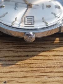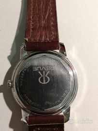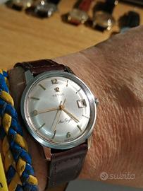 Orologio revue sea eagle in ottime condizioni e perfettamente marciante,bellissimo quadrante originale soleil con data,cassa in acciaio da 36mm escluso corona,ref.T1623A movimento msr revue su base eta 2572,corona e fibbia originali con logo revue,al momento monta cinturino in coccodrillo marrone.con orologio anche scatola originale revue del epoca,permuto con vintage longines,omega,zenith,girard perregaux e militari assegnati,vedi altri miei annunci.