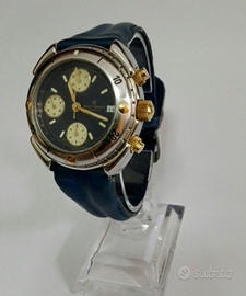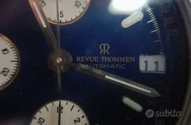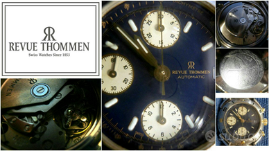 Raro e particolare orologio Revue Thommen crono automatico, movimento swiss made ETA Valjoux 7750, cassa in acciaio con inserti oro, quadrante blu con volantini champagne. Presenta qualche segnetto del tempo come da foto. Orologio originale