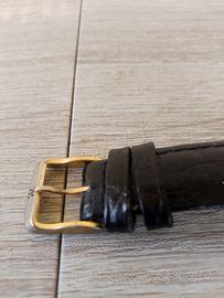 Splendido orologio Revue Thommen, modello della celebre collezione Wall Street. Un segnatempo che incarna l'eleganza classica svizzera, caratterizzato da un profilo ultra-sottile che scompare sotto il polsino della camicia. ✨ Caratteristiche Principali: Marca: Revue Thommen (Storica maison svizzera fondata nel 1853). Modello: Wall Street. Movimento: Quarzo di alta precisione Swiss Made. Quadrante: Nero profondo con indici a bastone dorati e logo RT applicato a ore 12. Cassa: Placcata oro con una particolare lunetta scura a contrasto che ne esalta il design moderno. 33 mm Funzioni: Ore, minuti e datario a ore 6 (molto equilibrato). Cinturino: In pelle nera originale con fibbia logata (segni di usura naturali, vedi foto). Dimensioni: Design ultra-piatto per il massimo comfort. Resistenza: Water resistant 30M (3 ATM). 🔍 Condizioni dell'oggetto: L'orologio è originale al 100%. Esteticamente si presenta in buone condizioni generali: Vetro: Pulito, senza graffi evidenti che disturbano la lettura. Cassa: Presenta lievi segni di utilizzo e del tempo sul retro (fondello), come visibile in foto, che non ne compromettono l'estetica una volta indossato. Funzionamento: Perfettamente funzionante, tiene il tempo con precisione. 📦 Perché acquistarlo? È l'orologio ideale per occasioni formali o per chi ama uno stile vintage minimalista ma di lusso. Revue Thommen è un marchio per veri intenditori di orologeria svizzera, noto per la produzione di strumenti aeronautici e movimenti di alta qualità. 👉 Spedizione rapida e imballaggio accurato. Disponibile per ulteriori foto o info nei messaggi! #RevueThommen #WallStreet #SwissMade #OrologioUomo #VintageWatch #UltraSlim #LuxuryWatch #OrologioClassico #Dress