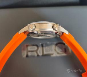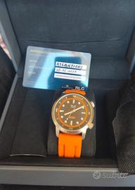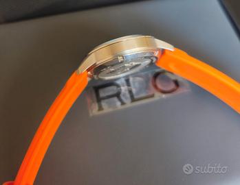 Vendo orologio perfettamente funzionante con movimento automatico calibro nh35, la cassa in acciaio misura 42mm escluse corone, impermeabile 200metri ma non testato, quadrante nero/arancio, indici e lancette luminescenti, vetro zaffiro a doppia cupola, orologio modello superkompressor con ghiera interna girevole, cinturino in gomma, orologio originale in tutte le sue parti completo di scatola e documenti. non spedisco, solo consegna a mano.