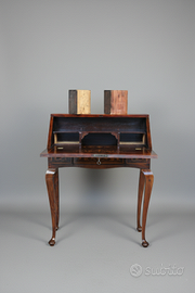 tre cassetti sottopiano e tiretti reggi piano,calatoia celante due cassetti e un vano,serrature con chiavi funzionanti,gambe mosse.