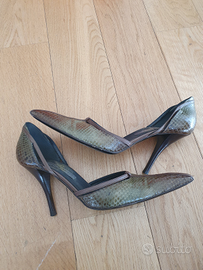 Vendo scarpe Alberta Ferretti in pelle pitonata verde e marrone sfumata. Taglia 38. Punta e tacchi praticamente perfetti. Usate, ma in buone condizioni