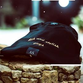 •Frontale: lettering “Rich and Stylish Guys - in design minimal—espressione di eleganza e carisma