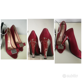 RICHMOND SCARPE CON TACCO a punta aperta in RASO ROSSO