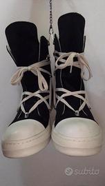 Stivali Rick Owens DRKSHDW, in canvas nero. Sono in ottime condizioni e presentano un design unico.
