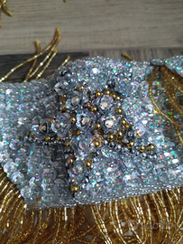 Rigido oro e argento. Decorato a mano. Bellissimo, ottima vestibilità. Riprese tutte le cuciture e imbottito reggiseno dall'interno. Perfetto, come nuovo. Adatto ad una prima o seconda