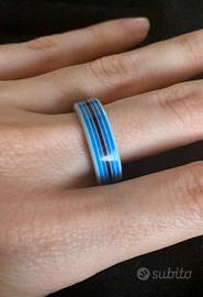 Anello carinissimo interamente in plastica sfumature di azzurri ovviamente di un leggero che neanche si sente