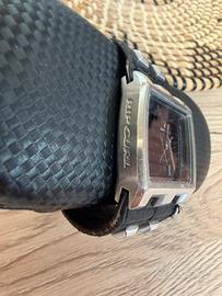 Cassa in acciaio inox, cinturino originale Rip Curl, quadrante nero.
