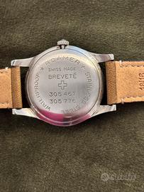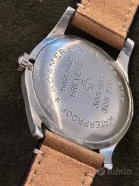 orologio da polso vintage Roamer Anfibio Super-Shock con movimento meccanico a 17 rubini. Caratteristiche: Quadrante chiaro con numeri arabi, lancette scure, movimento manuale MST e dicitura "Swiss Made". qualche segno di usura (presenti nelle foto) No scatola, garanzia