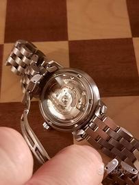 Vendo roamer automatico anni 90 fondo scheletrato, monta calibro ETA automatico 25 rubini svizzero , perfetto in ogni sua parte , funziona benissimo , acciaio di alta qualità , bracciale pieno , no lamierino , quadrante argento , prezzo non trattabile , no scatola .