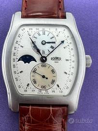 Roamer Regolatore cassa di forma Tonneau ref.3231 orologio con dara e fasi luna carica manuale fondello trasparente
