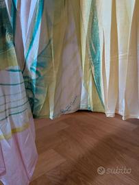 Rarissima gonna d'archivio Roberto Cavalli in 100% seta. Un pezzo iconico dell'era d'oro dello stilista, caratterizzato da una stampa fluida astratta nei toni del verde acido, giallo e azzurro. Dettagli iconici: - piercing in vita. Presenta l'originale gioiello con cristallo e ciondolo logato "RC"; - orlo asimmetrico a fazzoletto, molto leggero e fluttuante; - 100% seta di altissima qualità; - logo "Roberto Cavalli" visibile all'interno della stampa (come da foto); - taglia L (veste bene anche una M data la fluidità del taglio); - eccellenti condizioni vintage. Seta vibrante e piercing perfetto. Un vero pezzo da museo per gli amanti del vintage di lusso.