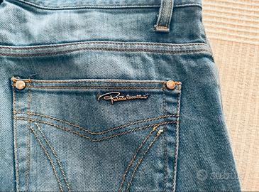 Come nuovi usati pochissimo, Roberto Cavalli taglio dritto a vita bassa taglia 46 colore blu chiaro sovratinto