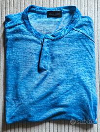 Roberto Collina bellissima maglia serafino uomo 70% lino 30% tencel, taglia 50, colore azzurro melange, praticamente nuova, perfetta.